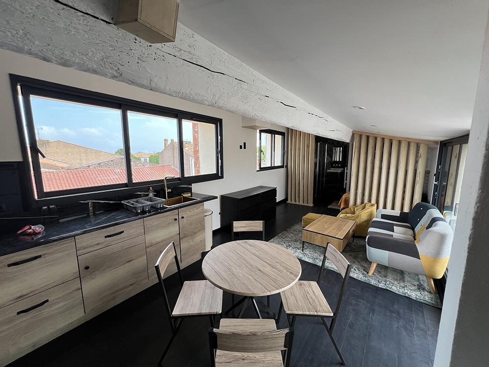 La vue panoramique du loft donne d'un côté sur les toits et monuments de Marseillan et de l'autre sur l'étang de Thau bordant Sète, Bouzigues, Mèze.